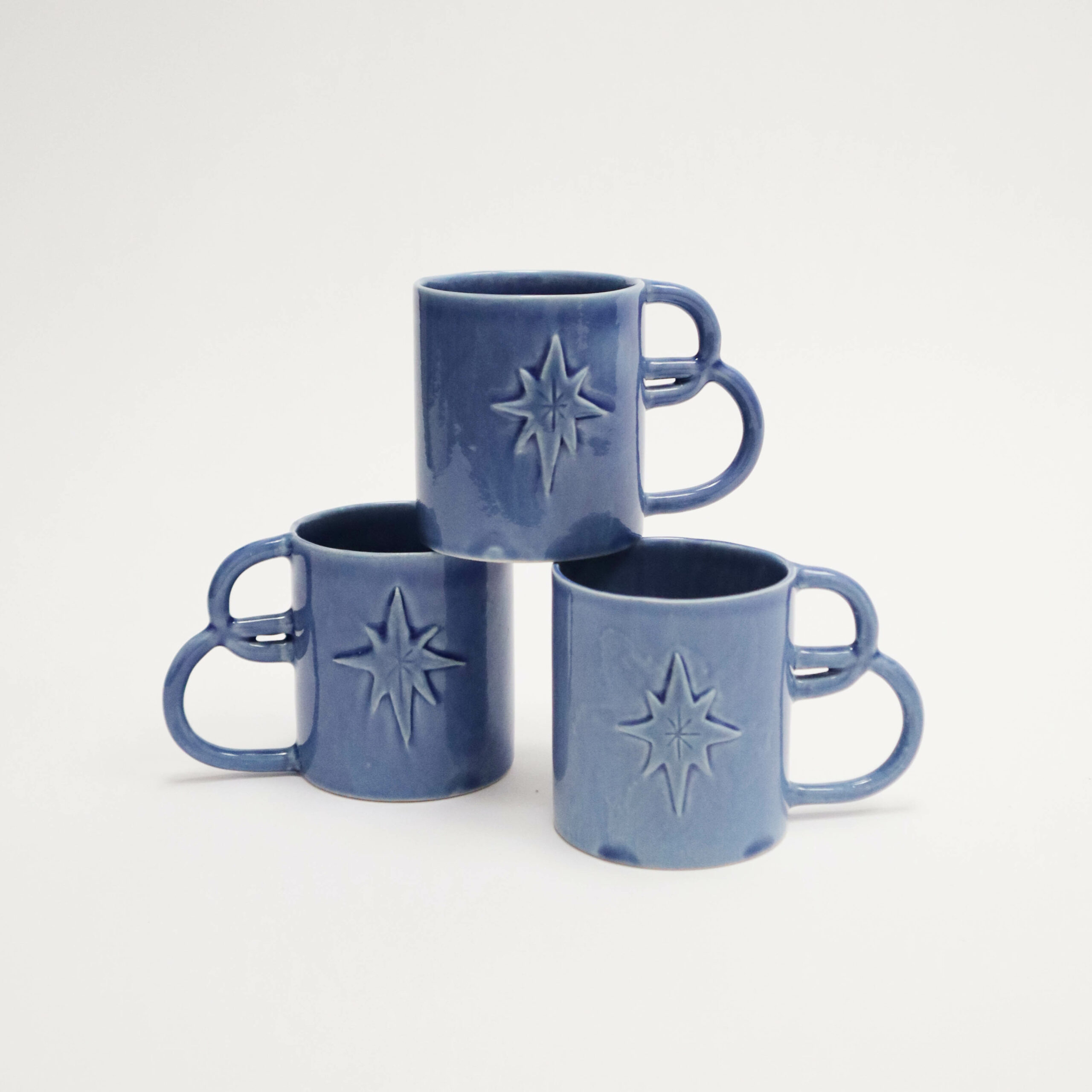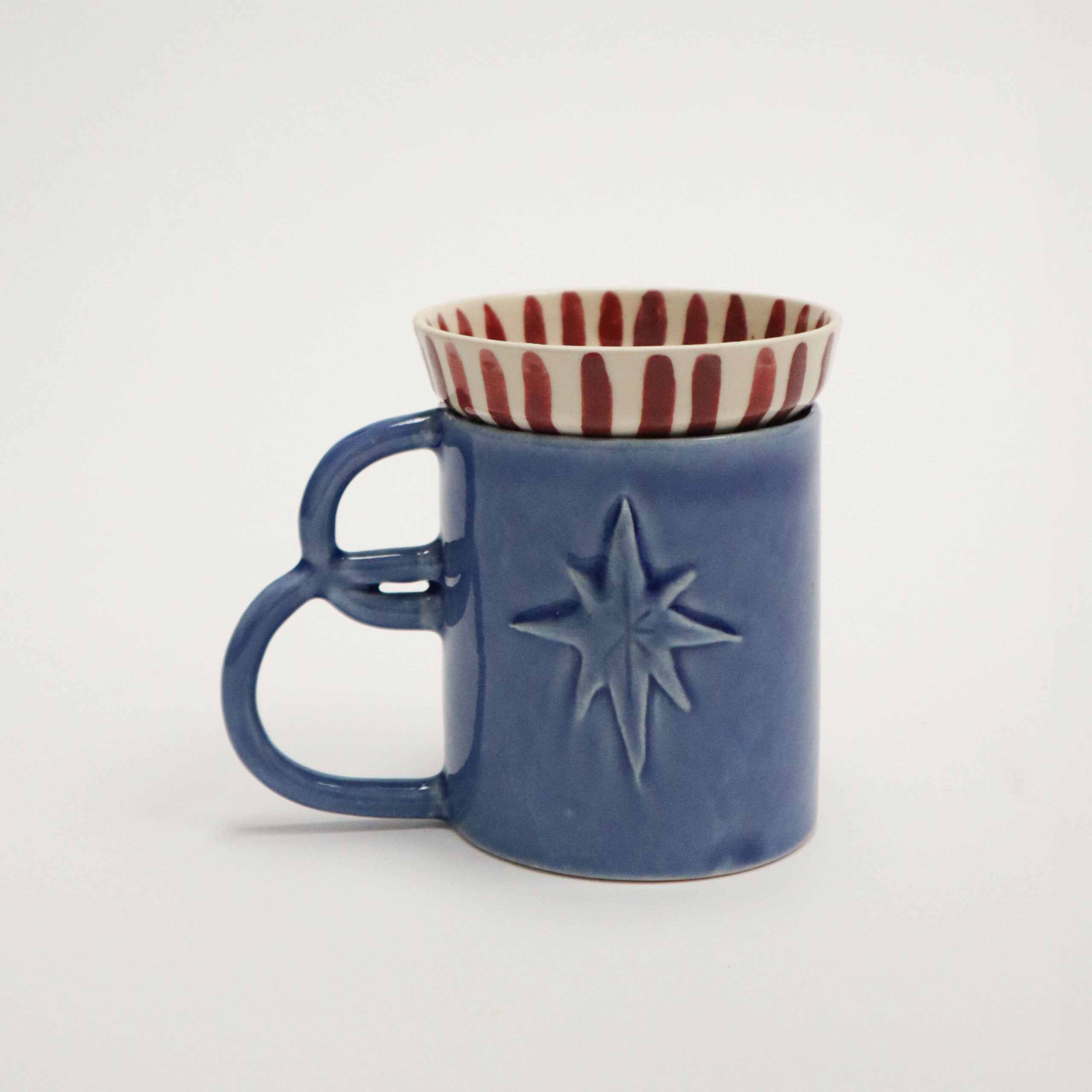 De petits symboles porte-bonheur, étoile, gland ou trèfle, sont délicatement sculptés en bas-relief sur la tasse, apportant une touche graphique et unique à chaque pièce.